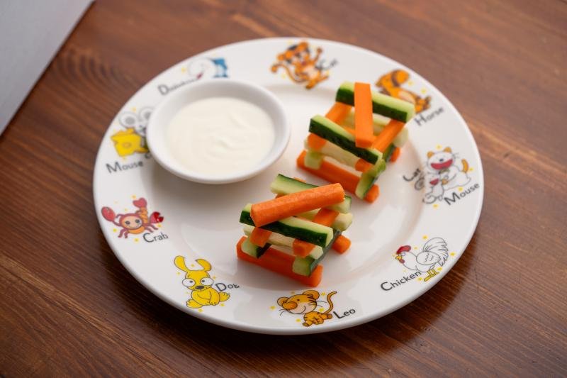 Овощные палочки со сметаной - полезное и яркое детское блюдо из свежих овощей и фруктов