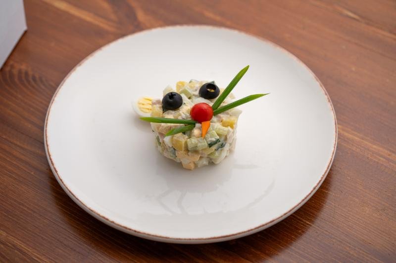 Лёгкий и питательный салатик из отварных овощей с добавлением нежного куриного мяса и домашнего майонеза